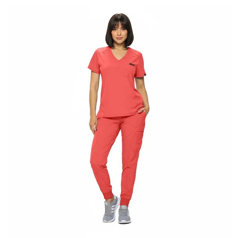 • WOMENS COOL STRETCH MODERN TUCK-IN TOP YOGA JOGGER SCRUB SET (STYLE# 4887SET)
