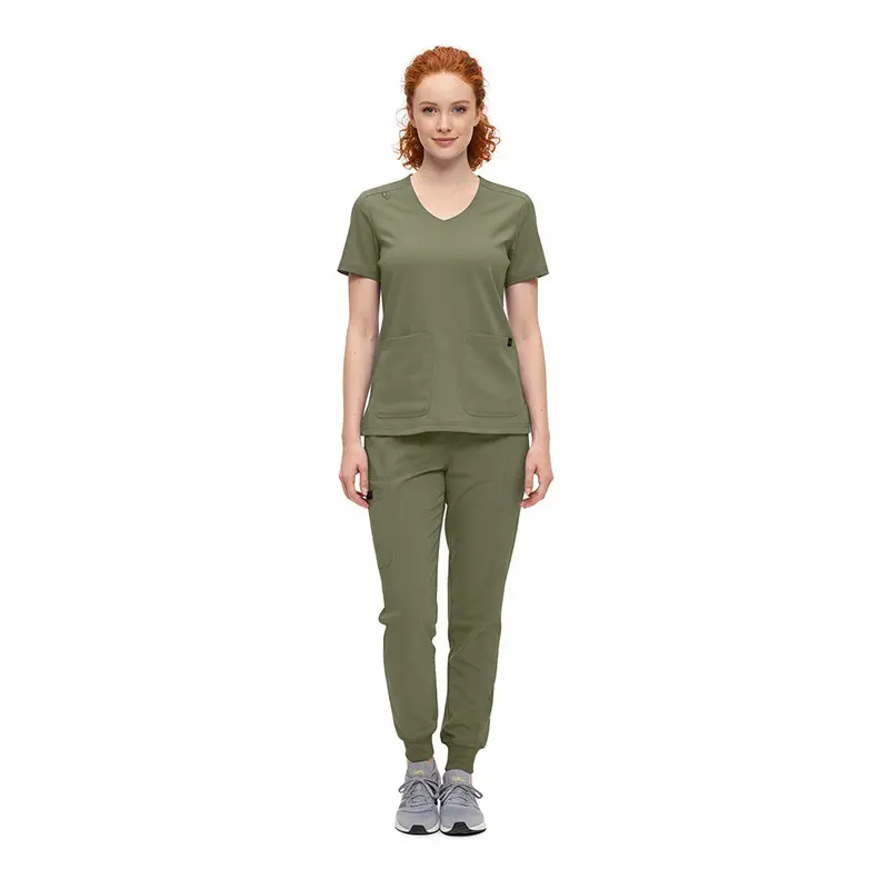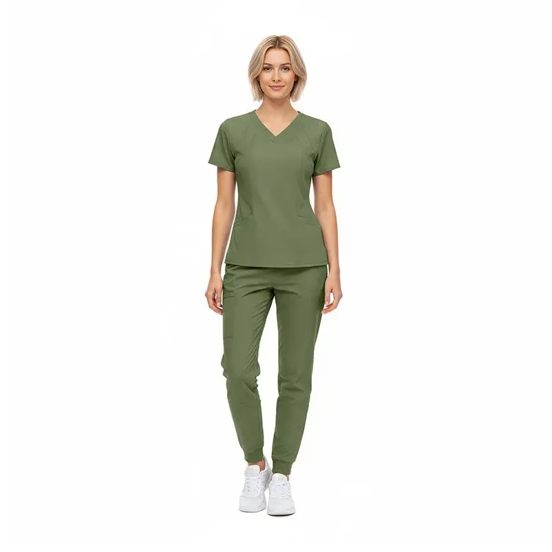 • CONJUNTO DE SCRUB PARA MUJER – TELA SUAVE Y ELáSTICA, PANTALóN JOGGER DE CORTE MODERNO Y TOP DE CUELLO REDONDO (ESTILO #4401SET)
