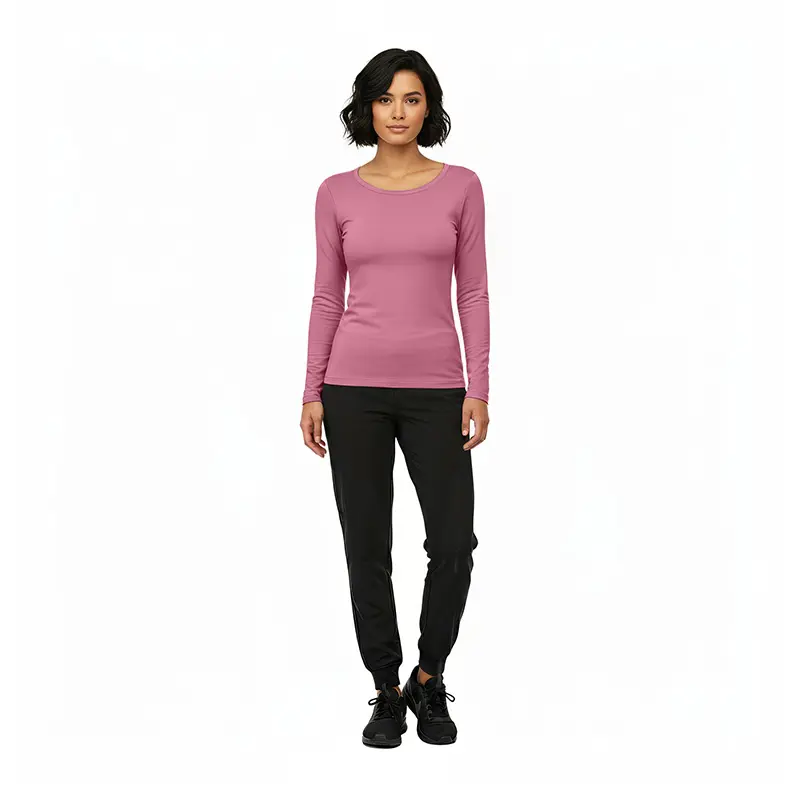 • CAMISETA MÉDICA ELÁSTICA DE MANGA LARGA CON CUELLO REDONDO – TOP SANITARIO (ESTILO N.º 7160)