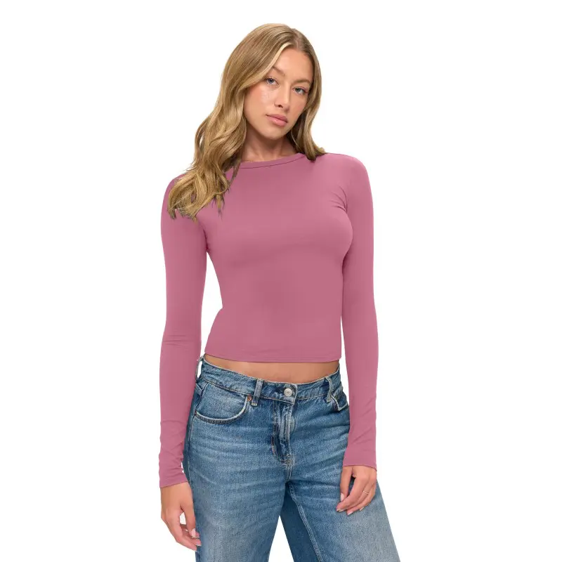 • CAMISETA AJUSTADA TIPO BABY TEE DE MANGA LARGA, CROP TOP (ESTILO 7260)