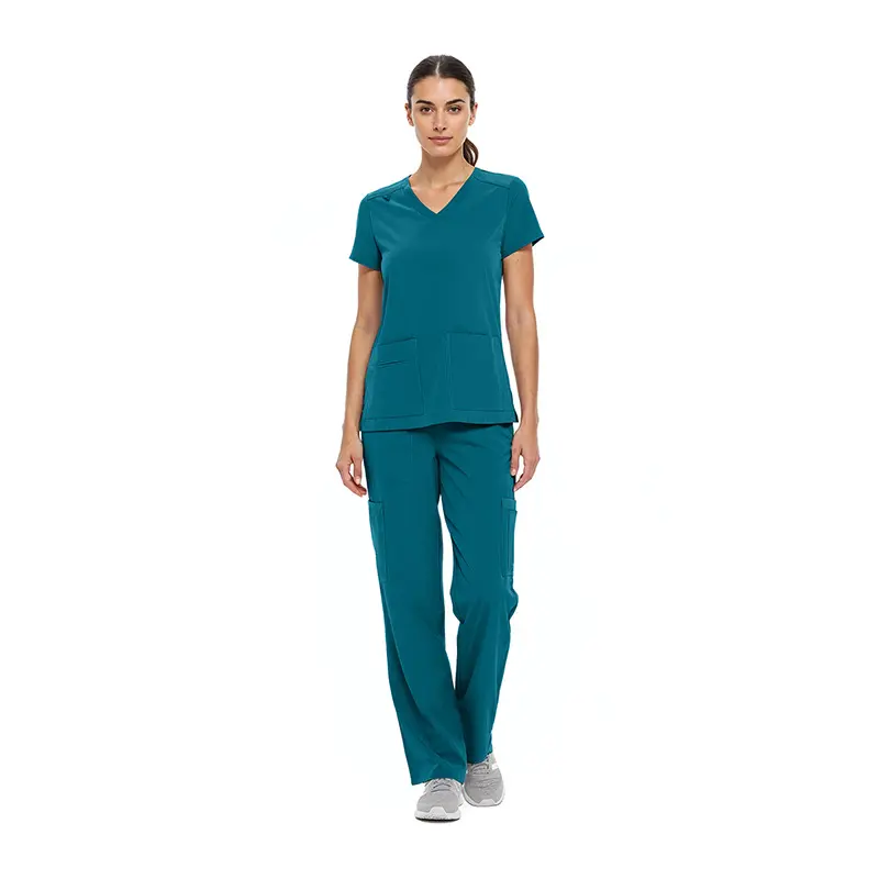 • CONJUNTO MÉDICO COOL STRETCH CON CUELLO EN V Y PANTALÓN CARGO PARA MUJER (ESTILO N.º 8400SET)