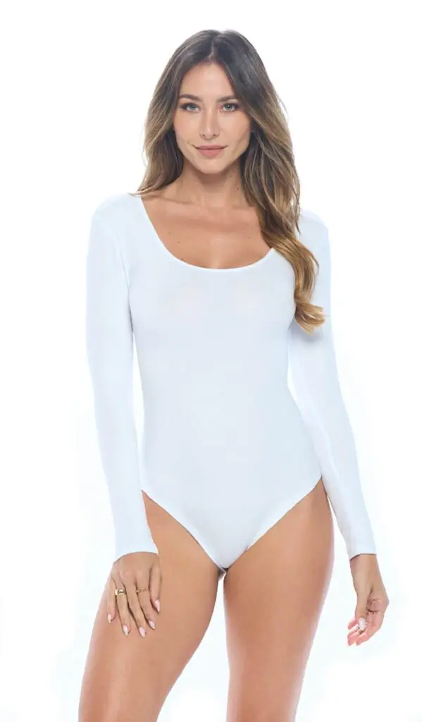 Body de manga larga y cuello redondo para mujer - Algodón elástico transpirable (estilo n.° 7182)