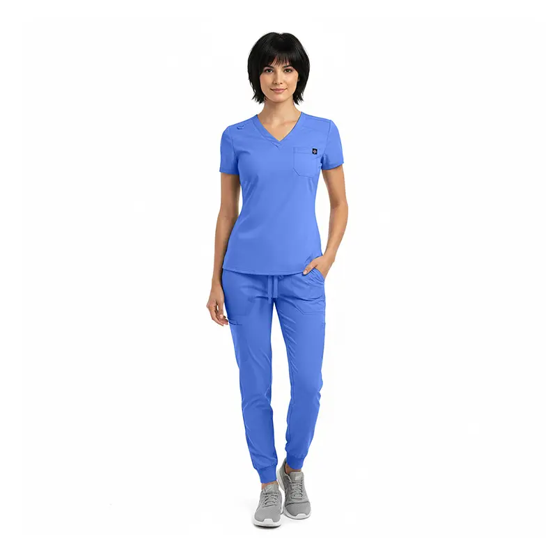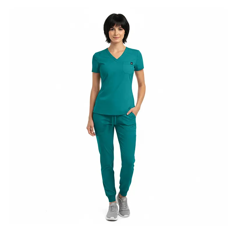 WOMENS COOL STRETCH MODERN TUCK-IN TOP YOGA JOGGER SCRUB SET (STYLE# 4887SET)